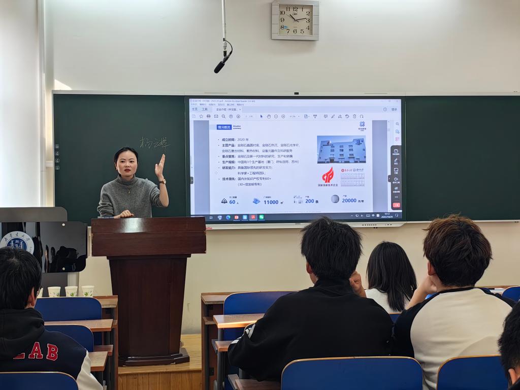 会上、化合积电半导体有限责任公司行政副经理杨云辉向大家介绍了企业战略布局、企业文化、核心产品等方面的内容,并向大家介绍了呼和浩特厂区的建设情况,与参会学生在就业意向、专业背景方面进行了交流。参会学生在了解企业基本情况、行业背景的基础上积极投递简历,同时就自身的就业需求与企业负责人进行了沟通。
